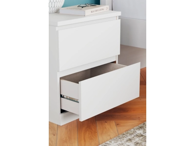 Create the modern bedroom of your dreams. The Onita nightstand offers a minimal design with maximum style, combining ultra-clean lines and an easy-elegant solid white finish with a hardware-less aesthetic. Drawers with ball-bearing glides keep bedside essentials handy.