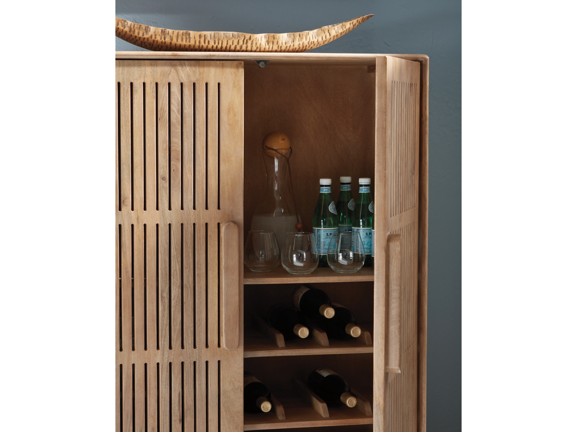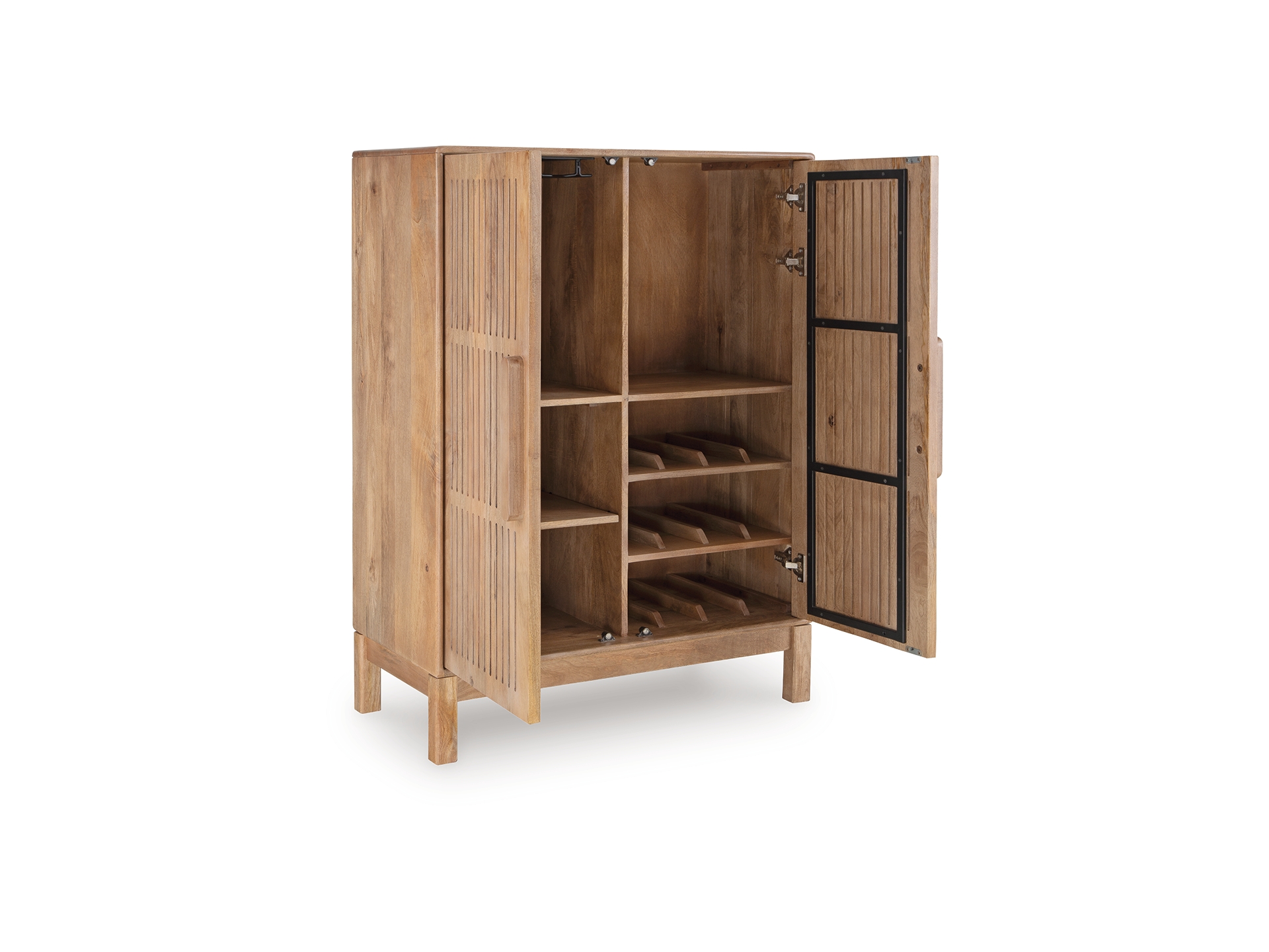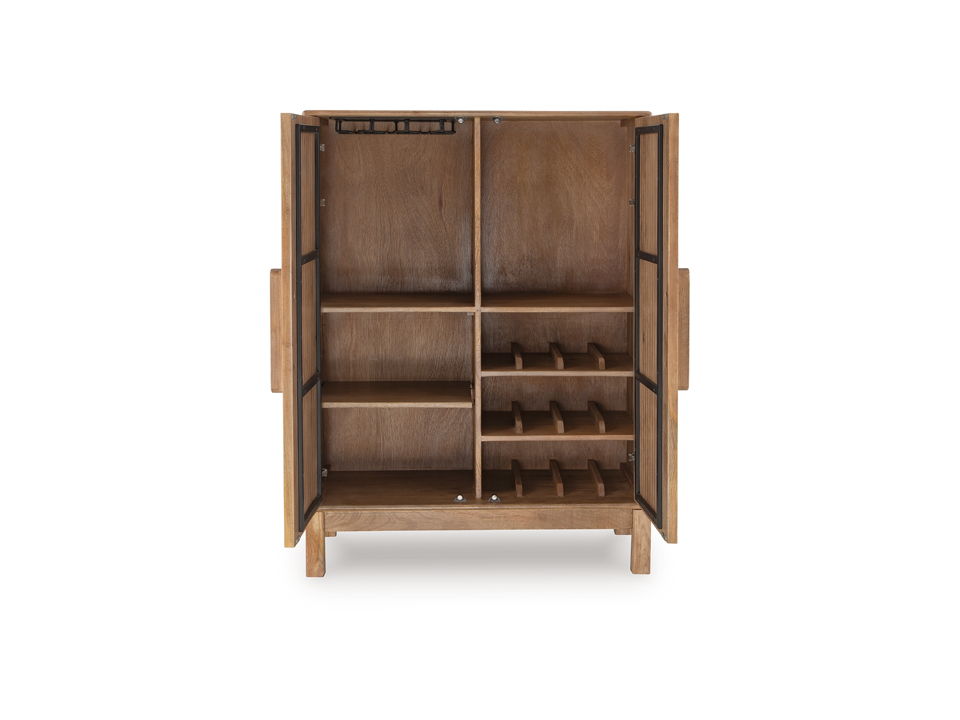 Host in casually chic fashion with the Pellamour bar cabinet. Outfitted with a natural brown finish, it’s stunningly crafted with mango wood. Bottle and wine glass holders keep your entertaining and nightcap essentials neatly organized. And with a mix of fixed and removable shelves, you can adjust the cabinet space to suit your storage needs. Cutout door fronts grace the piece with an air of carefree charm.