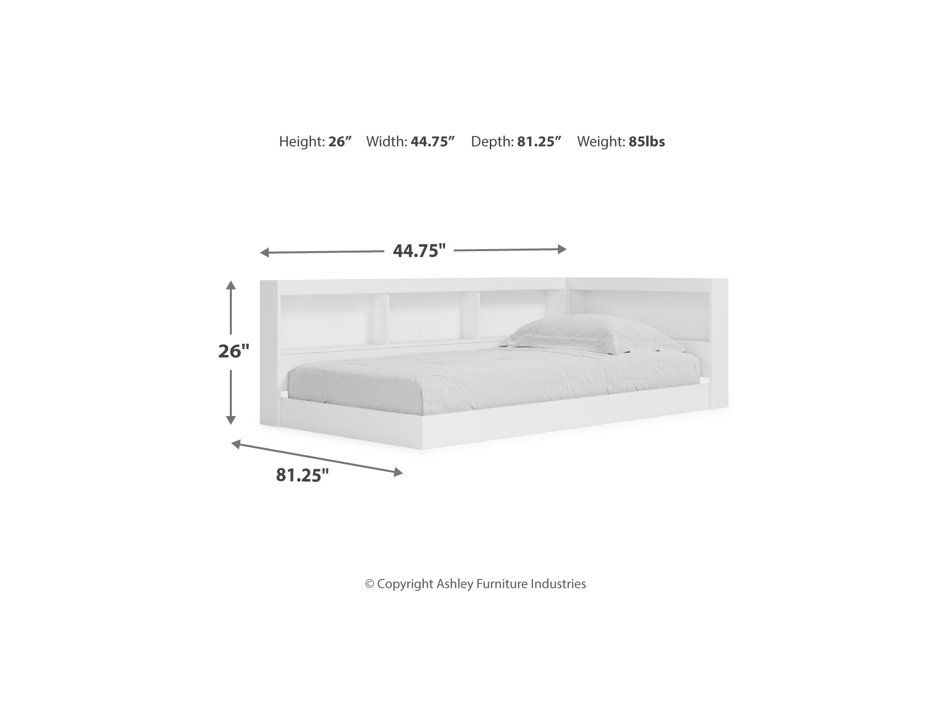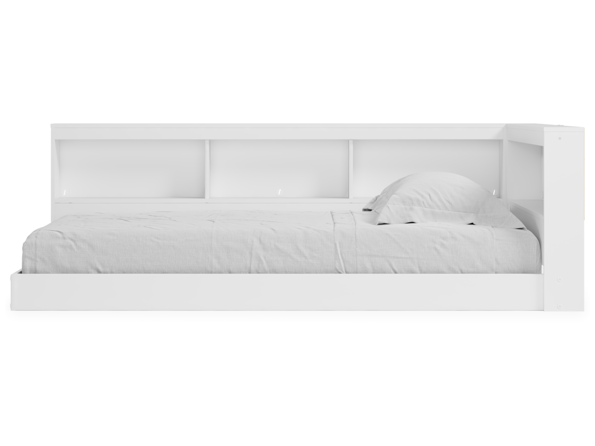 The Piperton twin bookcase storage bed is an inspired find, beautifully blending contemporary and casual style. Its matte white finish keeps things simple, while the bookshelf storage creates added function. This charming storage bed also offers slim-profile dual USB chargers and requires no additional foundation.