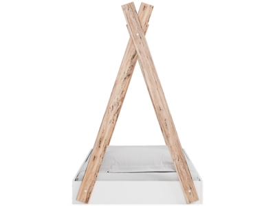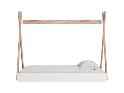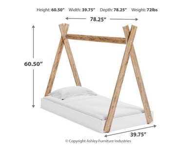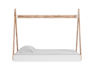 Adventure awaits with the Piperton twin tent complete bed in a box. The effortless blend of contemporary and casual styles creates an expressive two-tone look in matte white and replicated sugarberry wood grain pattern. This complete bed in a box requires no additional foundation, making it a functional, yet unique, addition to your home.