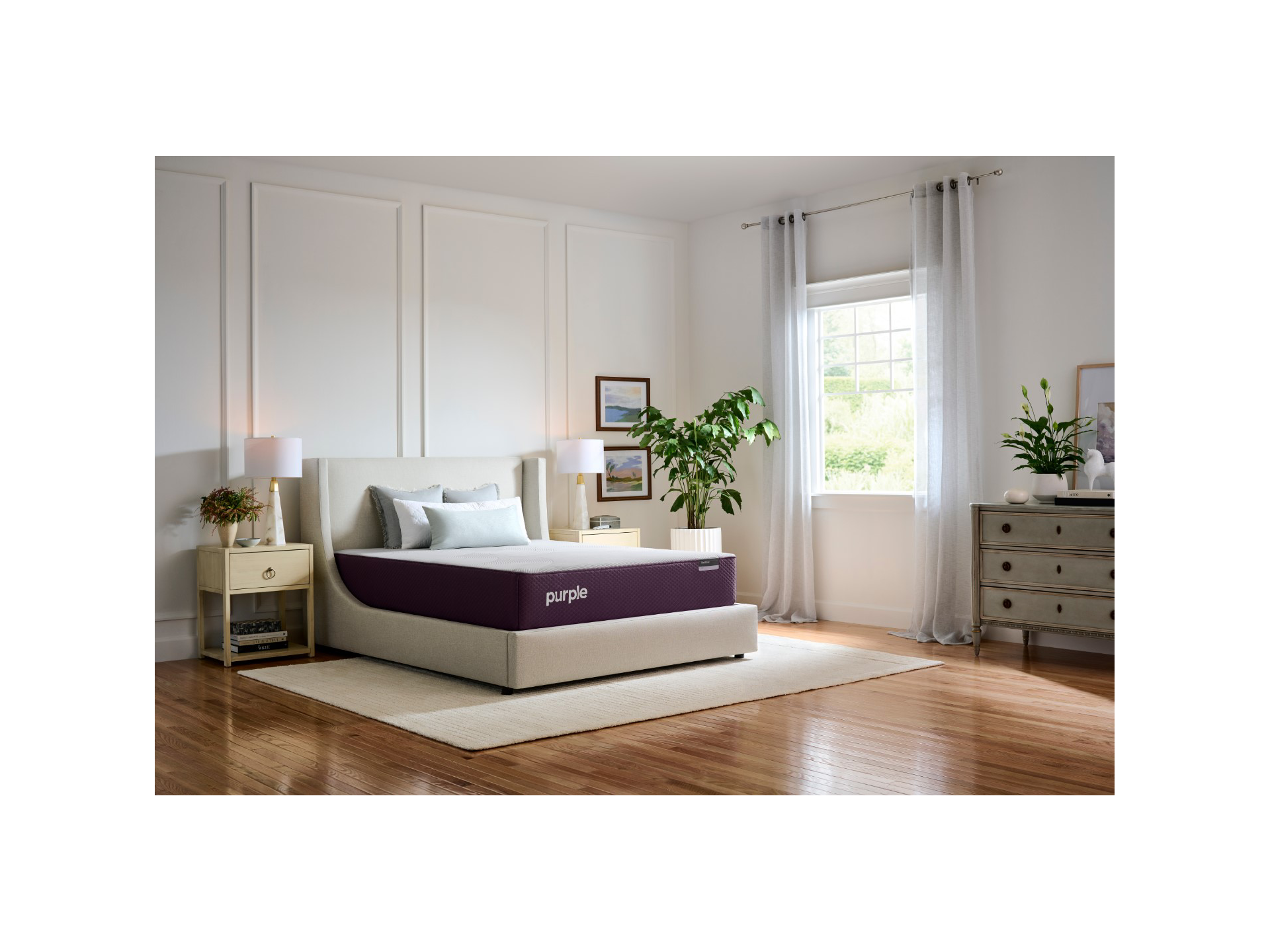 With this Purple mattress, you can relax on layers of upgraded comfort foam and responsive coiled support that draws excess heat away to promote deep sleep. And the Purple Premium Plus Smart Base provides the ultimate in comfort with enhanced lumbar support and pillow tilt, presets to help you snooze, dual massage settings for the ultimate Zen, convenient underbed lighting and an easy-to-use app to manage it all.