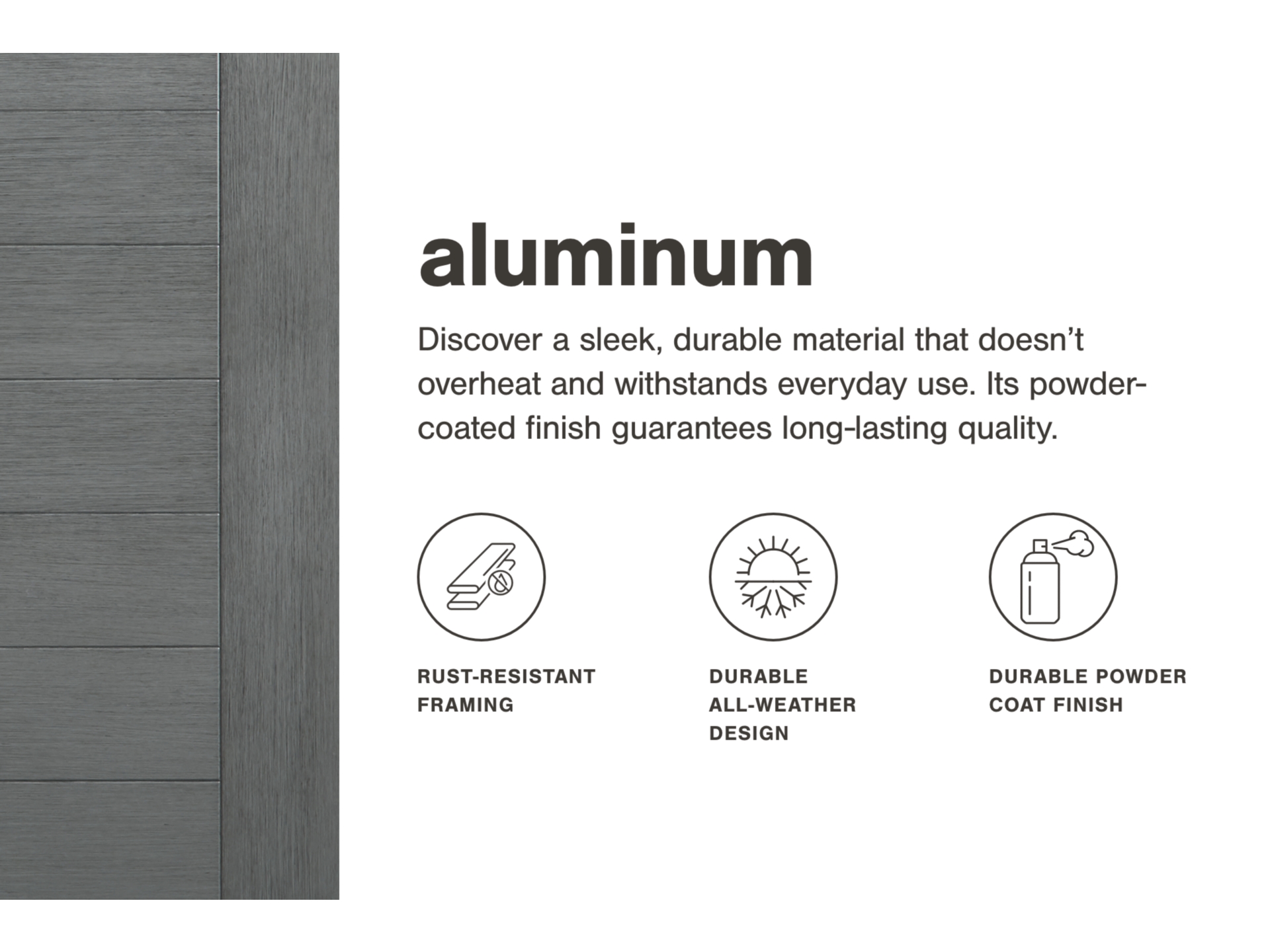 Powder coated aluminum resists rusting and fading