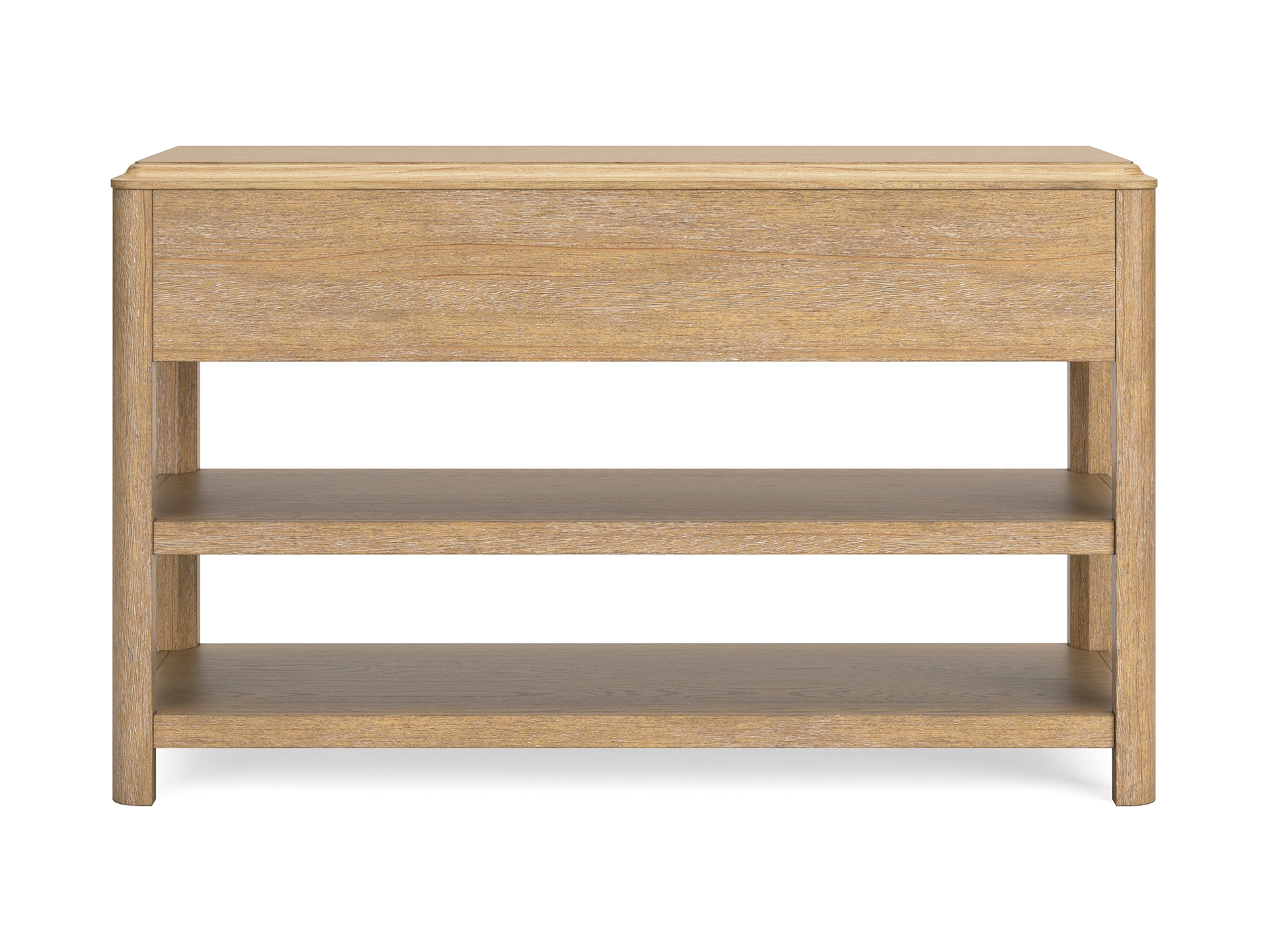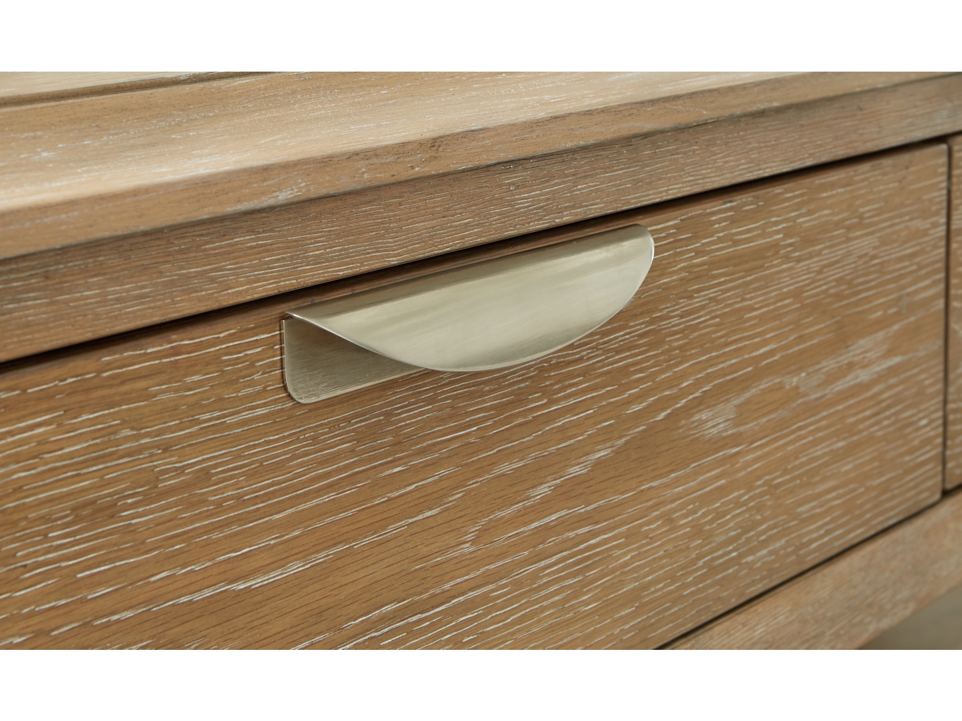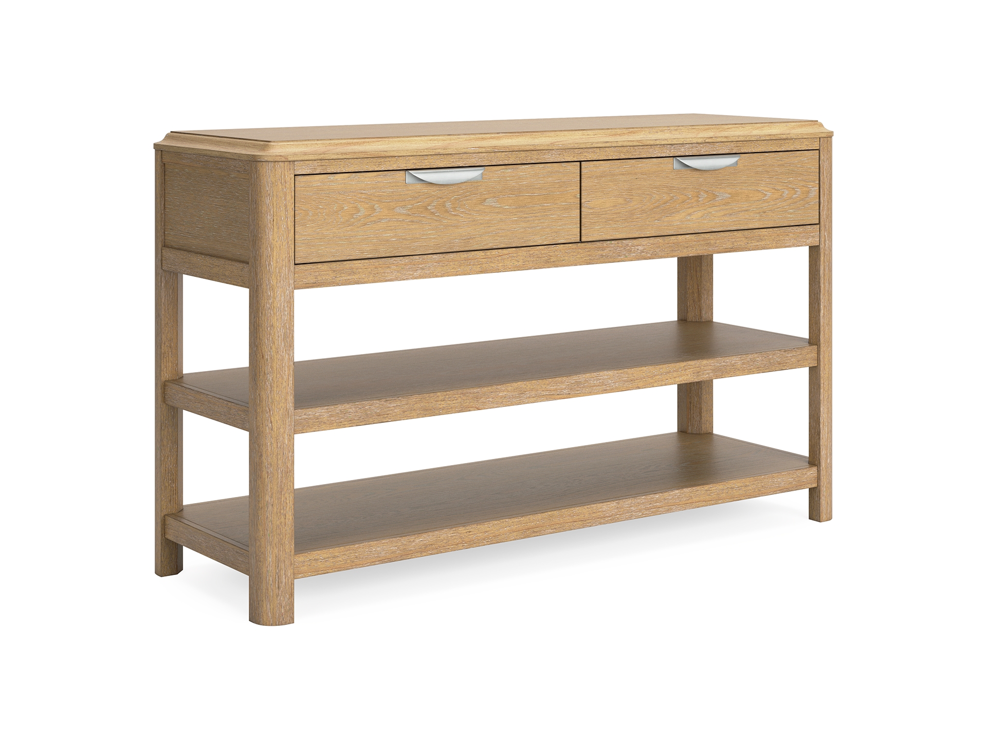The Rencott dining server’s classic yet contemporary good looks are hard to deny. Softly shaped posts and a light oak finish with wire-brushed wood grain texture lend an organic appeal to your delicious dining space. The server’s drawers offer spacious storage for serving essentials, while its open shelves are ideal for fashionable display pieces.