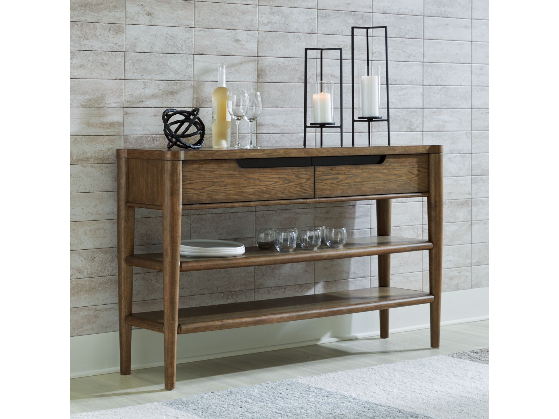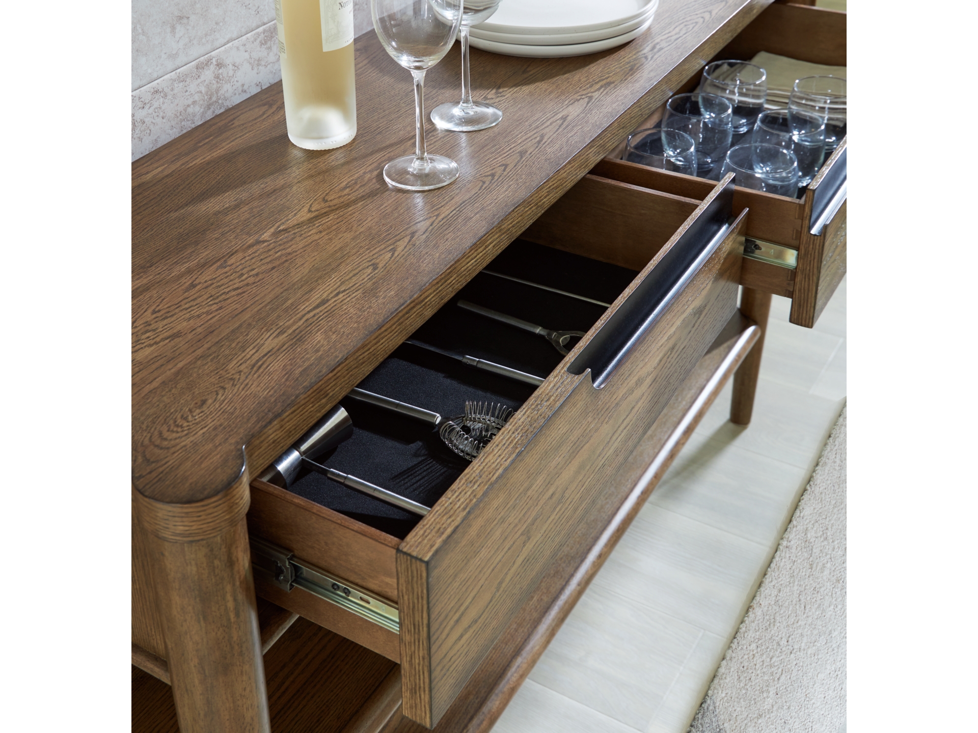 Give your modern or mid-century dining room that finishing touch. The Roanhowe dining server offers simple sophistication with a modern silhouette. Spacious drawers and open shelves provide ample storage and display space for dining essentials and decor. Picture yourself hosting guests with this gorgeous server—and bringing a little minimalism with big character to your home.