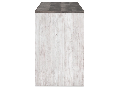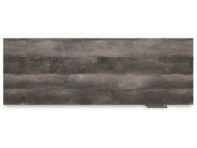 Top with rustic gray planked replicated oak grain with authentic touch