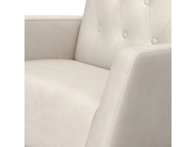 • Stylish, comfortable mid-century modern rocker with gentle rocking motion; Fully upholstered with a quilted, button-tufted pattern; Durable, solid wood base