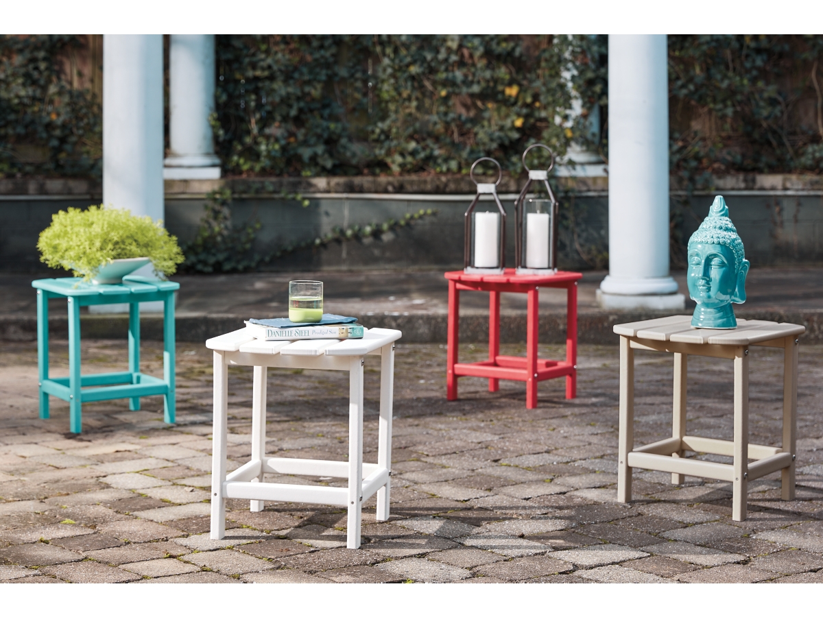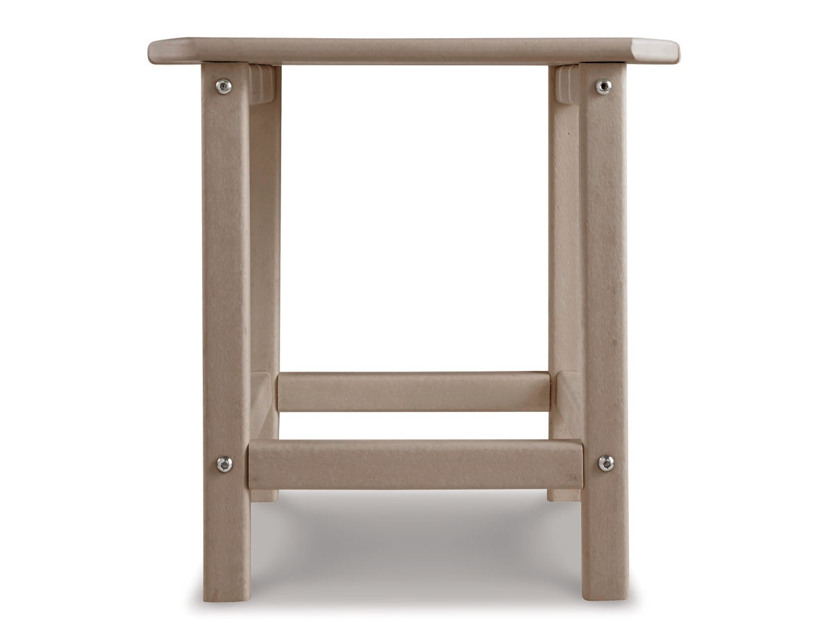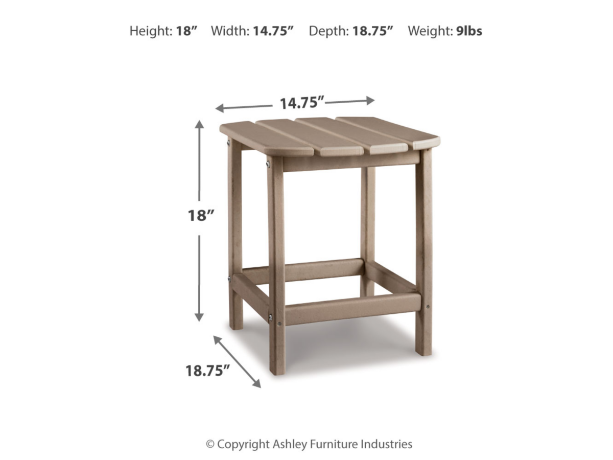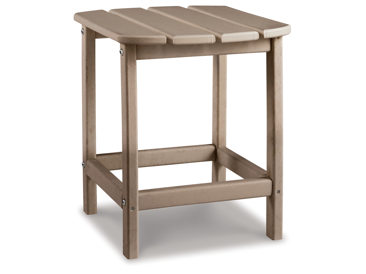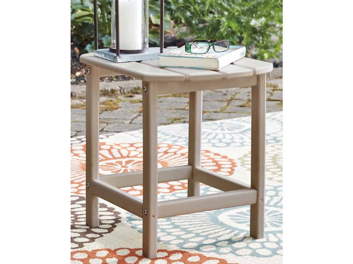 Add cottage-quaint charm to your outdoor oasis with the Sundown Treasure outdoor end table in a driftwood finish. Made of MEGA-TUFF® high-density polyethylene material, it’s sure to weather the seasons beautifully. Designed to shed rainwater, the table’s slatted top with gently rounded corners provides exceptional form and function.