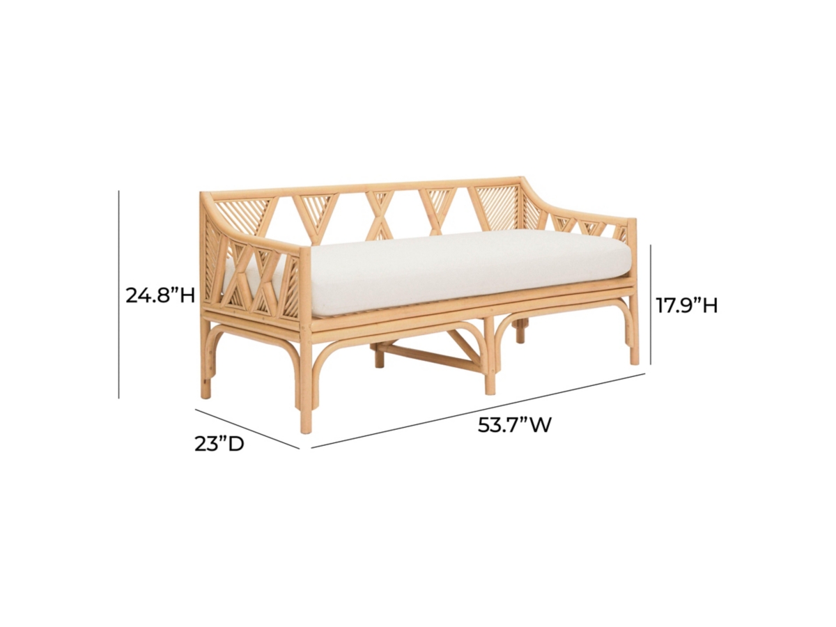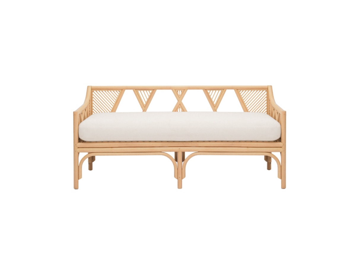 The Jayla Natural Rattan Bench is a stunning addition to any space, meticulously hand-wrapped in natural rattan. Its water-repellent and stain-resistant fabric ensures durability and easy maintenance, while the Palm Springs-inspired design infuses a beachy vibe. Perfect for both covered outdoor areas and indoor settings, this versatile bench brings elegance and relaxation to your home.