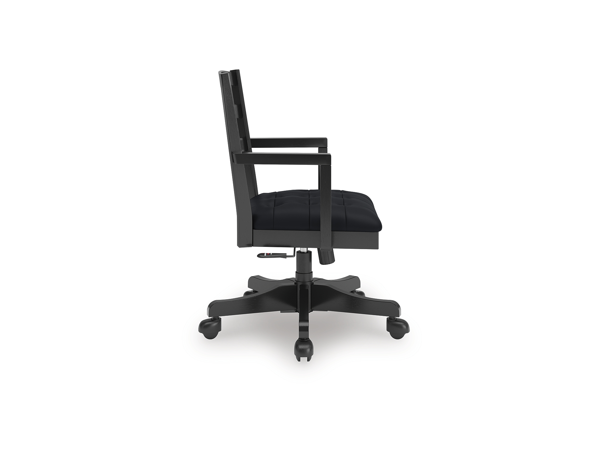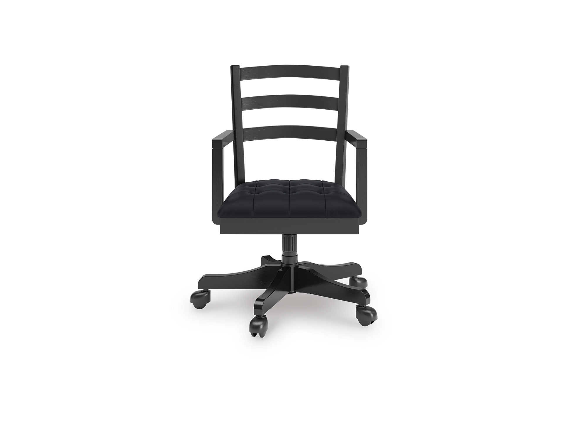 Raise the bar on modern farmhouse style with the Wildenauer home office chair. Its casual good looks are accentuated with a comfortably cushioned seat and warm satin black finish. And it swivels, rolls and adjusts so you can remain a mobile multitasker. Whether your style is vintage, country or eclectic, this richly crafted chair adds a hearty element.