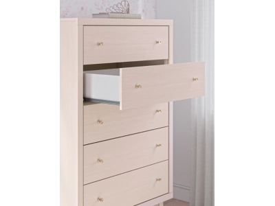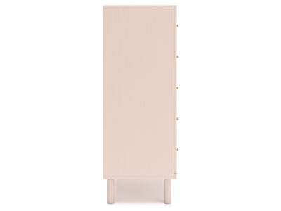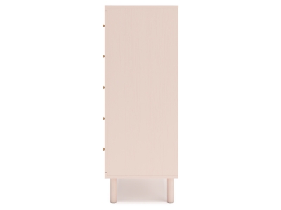 Pretty in pink. The Wistenpine chest of drawers keeps the spirit of your home’s modern aesthetic while suiting all your young one’s needs. Its subtle blush finish brings a playful, charming vibe to organizing clothes and other essentials. Made for her and styled for you, it’s a lovely addition to a beautifully chic child’s bedroom.